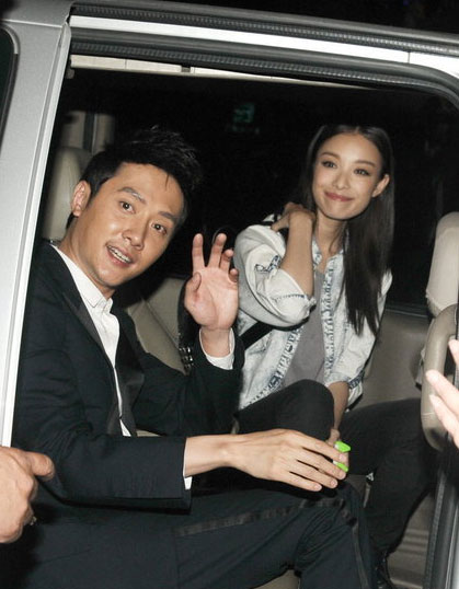 倪妮馮紹峰深夜?fàn)渴中闾鹈?向粉絲招手面露微笑