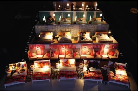 去電影院看電影,雖然能享受視覺和聽覺的震撼,但也有些遺憾,不能像在家那樣,躺在舒適的床上。不過,宜家能幫你實現(xiàn)這個愿望。在俄羅斯一個叫希姆基的小鎮(zhèn)里,宜家把當?shù)赜霸旱姆庞硰d設計成了溫馨的臥室,臺燈、大床、靠墊,一應俱全,觀眾只需花上一張電影票的錢,就可以躺在床上欣賞大片。